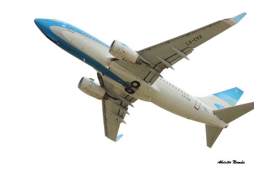 LV-CVX 8Y pasa sobre nuestras cabezas, con la bahía del tren de aterrizaje aún abierta, hacia su aeropuerto de destino.