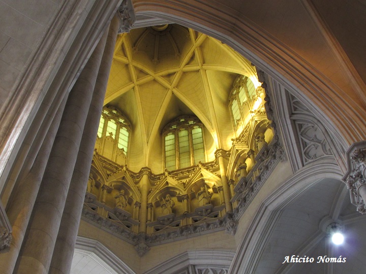 Y el interior es algo que no defrauda. Las expectativas que te haya generado la vista exterior de la catedral se verán totalmente cumplidas una vez dentro. Los techos elevadísimos están decorados con relieves, lo mismo que las columnas. Y ni hablar de la cúpula del altar mayor con estatuas custodiándola alrededor, iluminadas por un tenue tono amarillento.