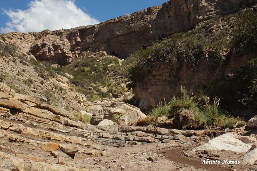 Se trata de una pequeña cascada de unos 30 metros de altura alimentada por agua de vertiente que, si es verano, uno agradece infinitamente que sea potable. Para llegar hasta ella habrá que realizar una caminata de aproximadamente media hora de duración, denominada «paleontológica» debido a la gran cantidad de fósiles marinos que uno va encontrando a medida que avanza. Cabe recordar que esta zona estaba cubierta por el océano hace millones de años atrás, cuyos rastros aún hoy podemos ver por doquier.