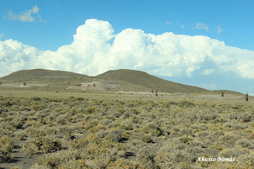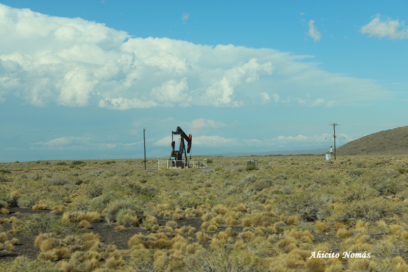 A medida que la combi avanza hacia la reserva uno empieza a notar el origen de esos caminos. Fueron abiertos hace años atrás por los petroleros que iban de aquí para allá buscando dónde perforar un pozo, y eso queda patente ya que hoy en día la actividad petrolera es una de las bases de la economía malargüense y los pozos petroleros están activos por todos lados.