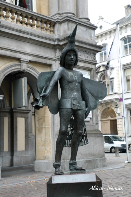 Como el tour sería interminable si nos dejaran subir en ese momento, seguimos camino y para eso dimos media vuelta, con lo cual divisamos en el centro de la plaza las estatuas de Jan Breydel y Pieter De Koninck, dos héroes locales que se destacaron en la defensa de la ciudad a las órdenes del duque de Flandes contra las tropas francesas que los habían invadido, allá por el 1300.