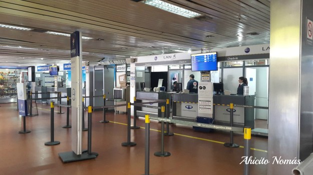 Aun cuando llegamos al aeropuerto con buena anticipación el cambio de asientos nos fue imposible: el vuelo estaba full así que no me quedaba otra que volar en la última fila. Esperamos en el hall del aeropuerto de San Juan hasta que Latam anunció el vuelo, y recién allí pasamos por los controles de seguridad de PSA que fueron dentro de todo bastante ágiles. Una bendición inesperada: la sala de preembarque de UAQ es lo suficientemente amplia como para que se pueda esperar el abordaje con cierta comodidad, incluyendo asientos, algo desconocido en los preembarques de otros aeropuertos del país.
