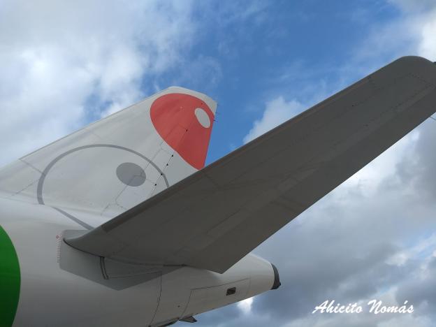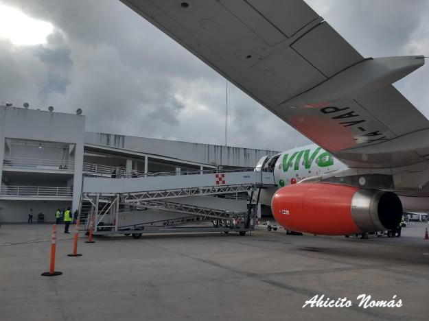 Salimos a plataforma a través de la rampa que se ve en la foto y como nuestros asientos eran de numeración alta dimos una vuelta por el costado del avión, pasando por debajo de su ala para abordar por la puerta trasera.