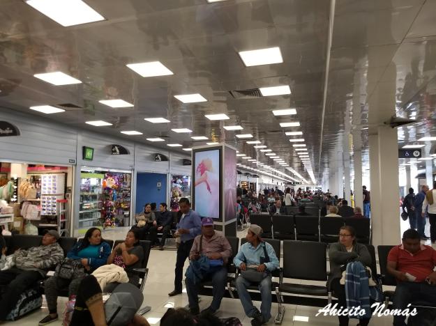 Es prácticamente un shopping con una larga hilera de asientos para esperar el horario de embarque, que son anunciados por altavoces, además de figurar en las pantallas de información. Esto habla de lo bien organizado que está este aeropuerto, con este sector de espera con locales de todos los colores para que compres lo que sea que necesites, y en un extremo un patio de comidas bastante importante.