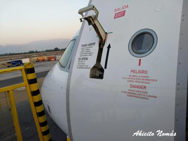 Con algo más de 2 años de antigüedad, el matriculado CC-BEI estaba en muy buenas condiciones, salvo por el único detalle de la Curita en la salida del aire acondicionado. Definitivamente ese implemento no forma parte de la MEL, la lista de equipamiento mínimo que determina si un avión puede despegar con algo roto, o no. Tercera vez que vuelo en un A321, y realmente es un avión que me gusta, me resulta cómodo para viajar, mucho más que los habituales A320 que operan el cabotaje argentino.