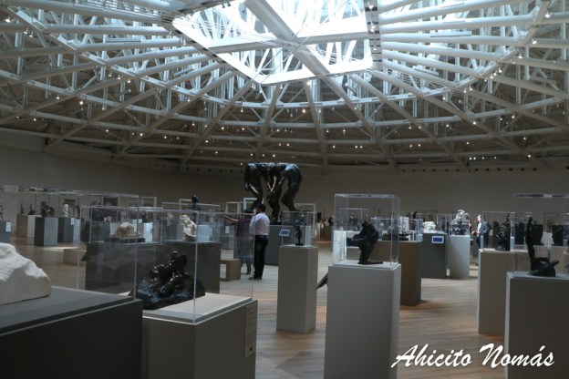 Lo primero que te quita el aliento es el edificio en sí. Con una arquitectura ultra moderna y difícil de definir, esta especie de hongo metálico deforme se alza 46 metros hacia arriba y está compuesta por más de 16000 placas de aluminio hexagonales que no se apoyan en el suelo ni se tocan entre sí. Una genialidad del arquitecto mexicano Fernando Romero que fue inaugurada en 2011 con la presencia del entonces presidente Felipe Calderón y varias figuras ilustres de la cultura, y que según indica la web oficial del museo, con su forma asimétrica hace referencia a una de las colecciones más importantes que alberga en su interior: la obra de Rodín. Pero como describirlo en palabras resulta casi un imposible, les dejo una foto para que lo aprecien ustedes mismos, aunque el tren cruzando me haya impedido utilizarla como imagen de portada.