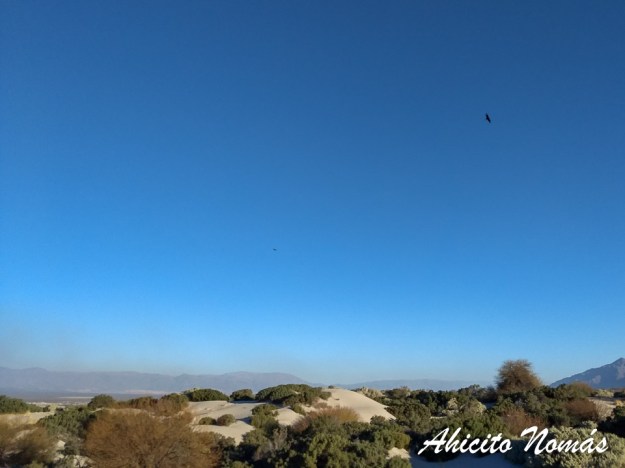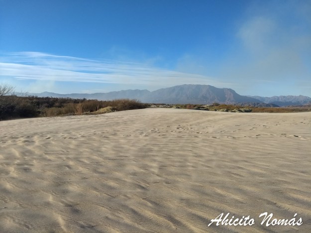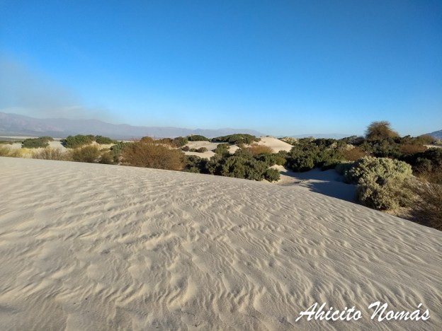 Se trata de la última parada de geoformas que pueden conocerse al recorrer la Quebrada de las Conchas, cuyo recorrido podés ver haciendo click aquí. Lo médanos se ven muy parcialmente desde la ruta, ya que están mayormente tapados por la vegetación, pero créanme, están ahí, y hay gente que los visita (y escala), como prueban estas huellas en la arena.