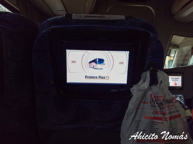 Ahora sí, dejando de lado la infraestructura de la terminal, podemos hablar del excelente servicio de Primera Plus. Con micros muy cómodos y equipados con un wifi a bordo que funciona aceptablemente bien, cada uno de los asientos cuenta con su pantalla individual con entretenimiento a bordo que incluye una selección de películas, música, libros y juegos. Al subir, en cada asiento uno encuentra sus auriculares.
