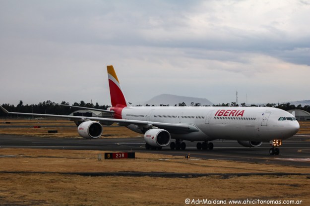 Y para el final dejamos los platos fuertes, porque en la realidad también hubo que esperarlos y estar atentos para fotearlos. Así finalmente llegó el A340-600 de Iberia.