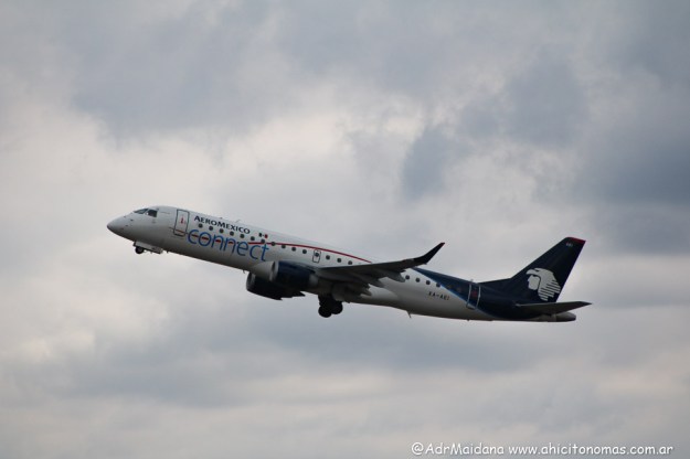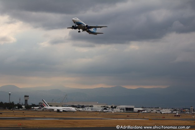 Arrancamos con los dueños de casa y su B737 matriculado N368AR en pleno despegue cuando ya caía el sol en Ciudad de México. Aeroméxico es el «propietario» indiscutido de este aeropuerto donde te cansarás de ver sus aviones llegar y partir, uno detrás del otro.