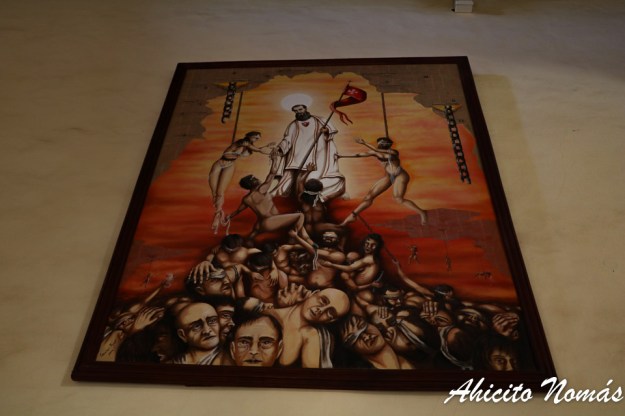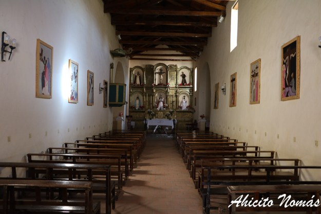 Visten las paredes de ambos lados distintas obras de arte. Los cuadros del Vía Crucis son ni más ni menos que tapices hechos por artesanos de la zona, mientras que por otro lado resalta el cuadro San Pedro Nolasco y los nuevos Cautivos de Ramón Chocobar, que impresiona de sólo mirarla.