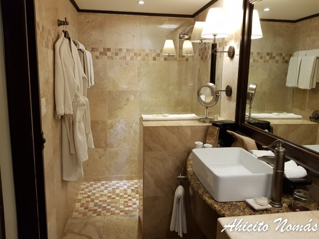 Si hablamos del cuarto en sí tenemos que decir que es espectacular. Increíblemente amplio, con espacio para dos enormes y comodísimas camas matrimoniales (al punto que podría decir que se trata de la cama más cómoda que encontré en toda mi vida en un hotel), aun quedaba lugar una especie de living donde estaban el escritorio (con espejo incluido), dos sillones y una mesita ratona.