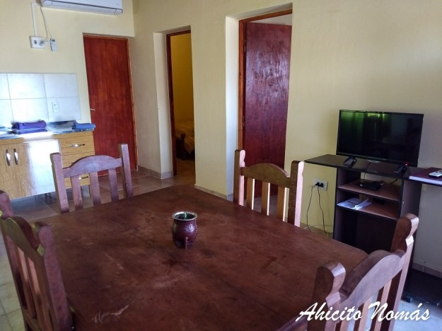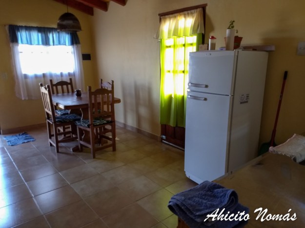 El ambiente central es una amplia cocina comedor que además está bien equipada para un grupo familiar de 4 personas, con ollas, utensilios y demás implementos de cocina. Ni siquiera faltaban los ingredientes básicos para cocinar, como ser el aceite, la sal o el azúcar, que muchas veces uno tiene que salir a comprar de apuro al supermercado.