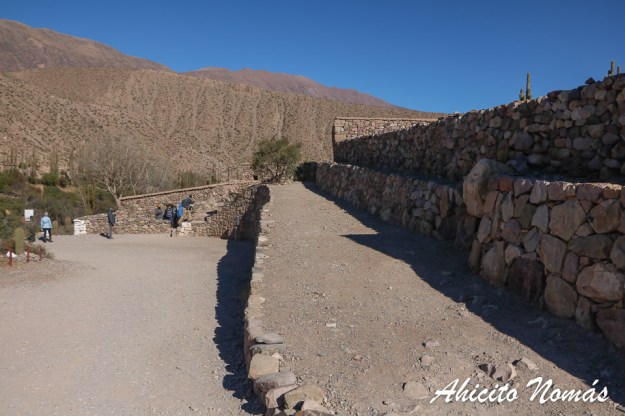 Luego de deleitar los ojos desde la cima a unos 2500 m.s.n.m. podremos volver a bajar a la base para seguir disfrutando del complejo. Desde abajo uno aprecia cómo el Pucará se va alzando a lo largo de la ladera y la abundancia de cactus que están desplegados por todos lados, y que los habitantes de este lugar aprovechaban ya que desde lejos el ojo humano se los confunde con personas. Todo un ejército apostado en la cima y listo para defender la ciudad del ataque enemigo.