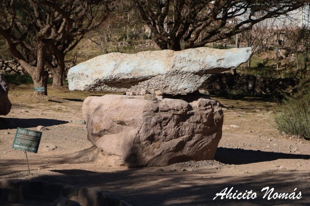 Para finalizar la recorrida, caminando unos metros hacia un lateral se llega hasta la Piedra Campana, que nada tiene que ver con el Pucará ya que fue trasladada hasta aquí desde el Cerro Campanario en el departamento de Cochinoca. Se trata de un enorme fragmento de roca volcánica que pesa unas 5 toneladas y posee un particular sonido a campana al ser golpeada. Algo parecido a lo que vimos en el Cerro de las Campanas de Querétaro, en México, del cual ya hablé en otro post.