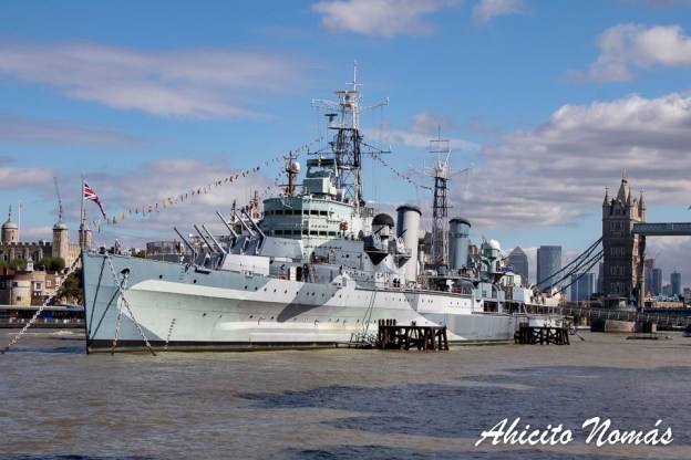 Amarrado a orillas del río Támesis, a escasos metros del Tower Bridge, una embarcación llama la atención de todo visitante que esté paseando por Londres. Se trata del HMS Belfast, un poderoso destructor que, desde que fue botado en 1938, cumplió servicio en la marina real. Y sí, no es una réplica ni mucho menos, se trata de un buque de guerra real, que peleó batallas de verdad.