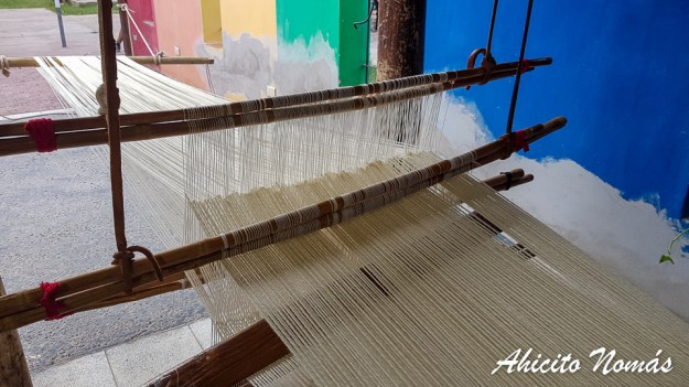 Me resultó muy interesante también apreciar cómo tiñen la lana, y cómo se diferencia cuando se utilizaron tinturas artificiales (como la anilina) de cuando se usaron elementos naturales, como ser el caso de la yerba mate y la cáscara de cebolla. Y por supuesto, ver funcionar los diferentes tipos de telares con los que cuentan las Arañitas: tanto el telar manual, como el telar criollo o bien, la máquina de tejer. En el caso del criollo, suelen tejer de a dos.