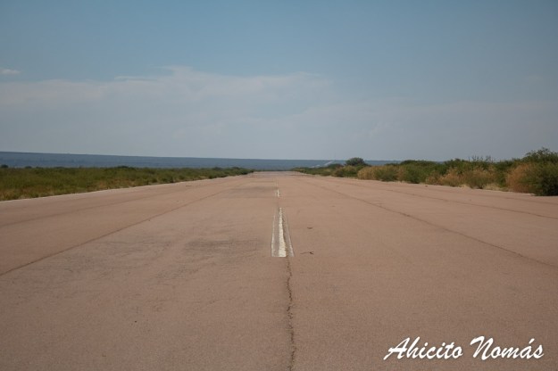 Pero claro, sin lugar a dudas lo más destacado del pueblo, y lo que más da la sensación de un pasado glamoroso y lleno de esplendor del que solo quedan los recuerdos, está sobre la ruta misma, y es ni más ni menos que la pista de aterrizaje que Menem hizo construir durante su mandato, y que en la actualidad está absolutamente abandonada. A ella se puede acceder sin problemas a través del pórtico que permanece abierto.