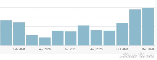 Mucho esfuerzo y empeño se vieron recompensados. Hoy termino el 2020 con algunas visitas más que en 2018. Lejos del récord alcanzado en 2019, lo sé, pero con una tendencia muy clara, ya que desde ese punto de quiebre en octubre, Ahicito Nomás crece sostenidamente, y actualmente tiene el promedio de visitas diarias más alto en la historia del blog. Un logro que habrá que trabajar para mantener, pero que augura un 2021 de crecimiento.