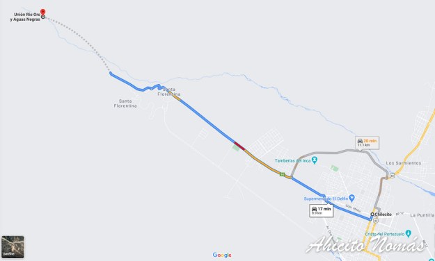 Mapa que muestra cómo llegar desde el centro de Chilecito hasta la Unión de los dos ríos.