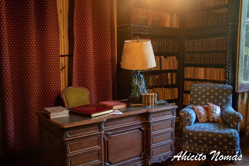 Pero a mi lo que más me fascinó (y me quedé un buen rato después que el resto del grupo salió para visitar la siguiente habitación) es la biblioteca. Ambientada en madera, contiene ejemplares antiguos, inéditos y de gran interés, como ser los viajes de Julio Verne en francés y español, y los detalles de la reconstrucción de las catedrales francesas luego de la Segunda Guerra Mundial, escrita ni más ni menos que por el arquitecto que la tuvo a cargo.
