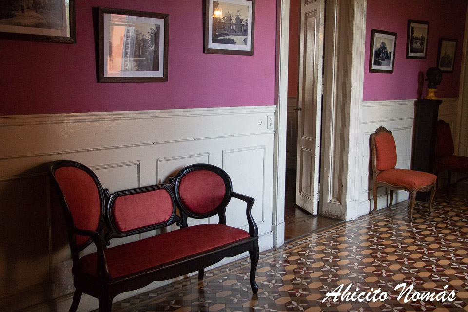 Los muebles por supuesto son antiquísimos. Destacan uno de madera con superficie de mármol que data de 1706, y en la planta alta pueden verse asientos que fueron traídos del palco que la familia tenía en el Teatro Colón.