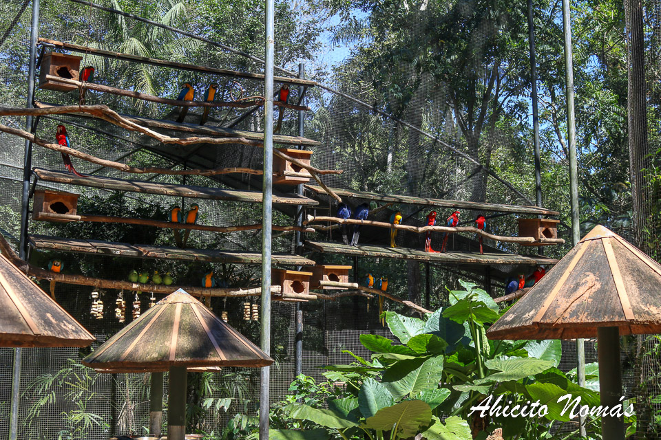 El aviario de los guacamayos es impresionante. Ya de por sí estas aves de colores tan vistosos son una delicia para los ojos. Pero además en el aviario impresiona la cantidad que hay, y cuando te vuelan en bandada por encima de tu cabeza es algo que difícilmente vayas a poder vivir en otro sitio.