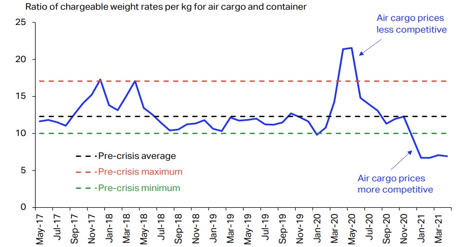 Todos los gráficos son propiedad de IATA y fueron publicados en el Air Cargo Market Analysis de Junio 2021, y están disponibles en la página web de IATA Economics.