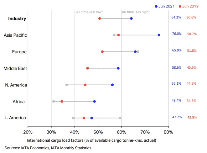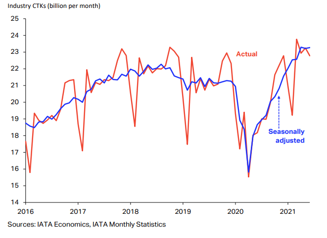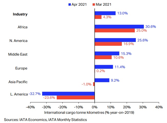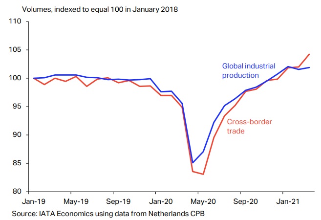 Todos los gráficos son propiedad de © International Air Transport Association, 2021 . [Air Cargo Market Analysis]. All Rights Reserved. Available on IATA Economics page.