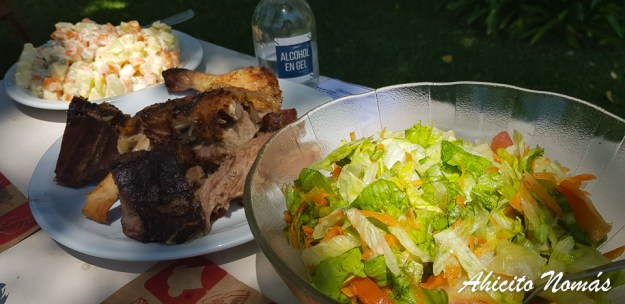 Vamos ahora con lo más interesante, porque en definitiva esta fue una salida gastronómica, así que queremos comer! El menú consta de una empanada de carne al disco (que es realmente un lujo), parrilla (chorizo, morcilla, asado, vacío, cerdo y en nuestro caso hasta algo de pollo) y ensaladas (que vienen bien abundantes). Las berenjenas al escabeche que nos sirvieron con la entrada, estaban de antología.
