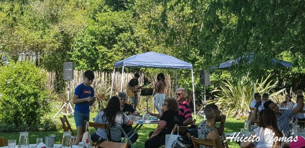 Hay música en vivo (al menos el día que fuimos nosotros, tranquila, ideal para acompañar la comida) y en la mesa tenés un sobre para poner la propina para los músicos.
