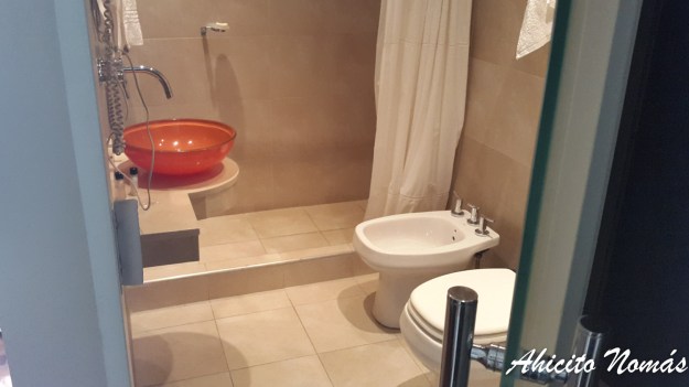 La habitación es correcta y cuenta con una cama ENORME. La más grande que ví en mi vida. Los detalles modernos se encuentran principalmente en el baño, especialmente en el lavatorio y en la puerta de acceso, que es de vidrio opaco y aunque no cuenta con traba, cierra bien.