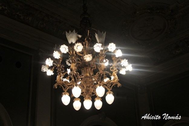 Una nota de color es la de las arañas, sin tulipas y con las bombitas al descubierto. Según nos explicó nuestra excelente guía, en la época en que se inauguró el teatro la luz eléctrica recién llegaba a la ciudad, y ese era el único edificio de Rosario que gozaba de este servicio. Por lo tanto las arañas fueron diseñadas para mostrar esto y ostentar la última tecnología de la que gozaba el lugar.