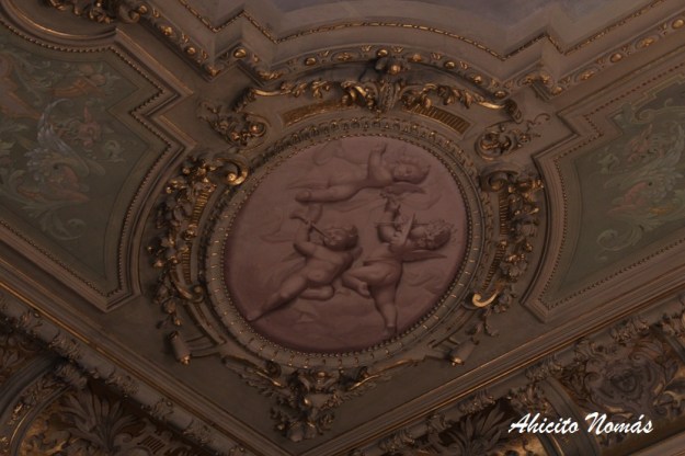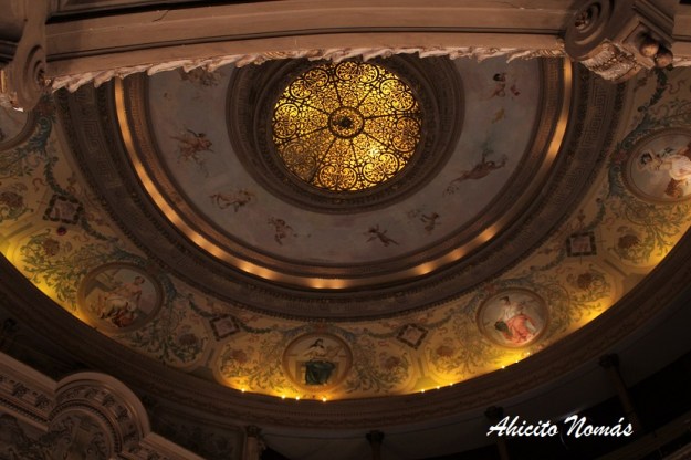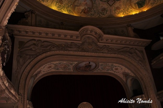 Lo que sí corresponde a este post es destacar el nivel de arte que hay en la ornamentación del teatro, incluída la increíble cúpula y la particularidad de las pinturas que figuran en el arco del escenario y en otras salas del edificio, donde si bien son solamente dibujos, están hechos con una técnica especial que engaña al ojo y simula relieve.