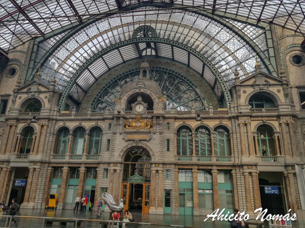 A los que lleguen por primera vez a Amberes por tren, les puedo asegurar que tan solo con bajar del vagón quedarán maravillados. Construida entre 1895 y 1905 la estación central de ferrocarril es una verdadera obra de arte. Desde las columnas y los techos vidriados hasta las imponentes escalinatas, pasando por la gran cantidad de detalles en dorado donde destaca el reloj, la arquitectura de este majestuoso edificio es algo que te quita el aliento. Difícil caer en la cuenta que se está en una estación de tren. Sin lugar a dudas, la más linda que vi en mi vida, y casi con seguridad, una de las más bellas del mundo.