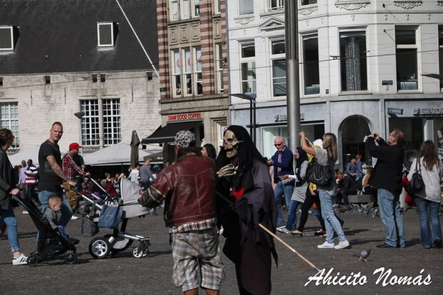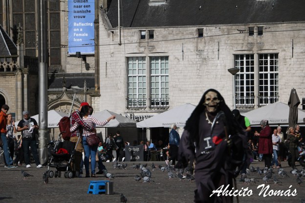 En la Plaza Dam se ven caras, pero también se ven caretas. ¡Y disfraces completos!