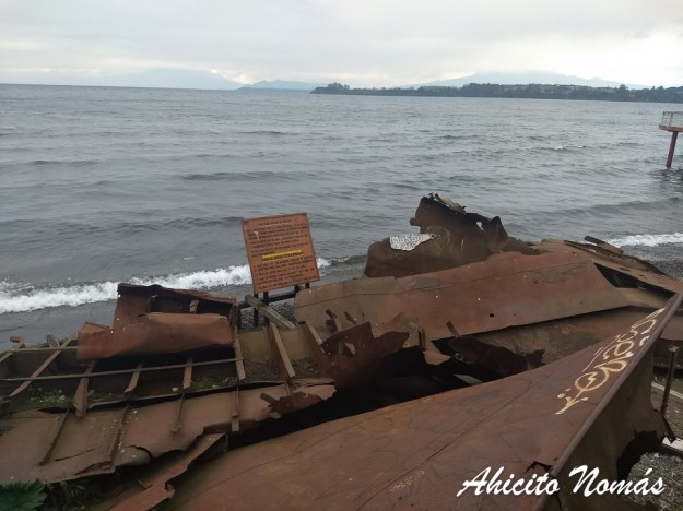 Pero este viaje en particular tuvo algo que me llamó la atención, y que no había notado las veces anteriores que estuve allí. Desde el muelle ubicado frente a la oficina de turismo, mientras contemplábamos la belleza del lago cerrándonos los abrigos hasta el cuello para hacer frente al viento frío que llegaba desde el agua, sobre la costa a la altura del casino se divisaba un conjunto de fierros oxidados a los que nunca les había prestado atención.