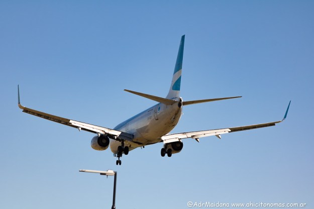 En el vuelo de regreso no me dormí, así que en la hora y media que dura pude disfrutar del servicio de abordo que es únicamente de bebidas. Recuerden que desde hace bastante Aerolíneas eliminó el serivicio de comidas a bordo para vuelos cortos. Al llegar a Aeroparque desembarcamos por manga, lo que hizo que nos mezcláramos con los pasajeros que aguardaban para abordar su vuelos en la sala de embarque. Siguiendo la cartelería de «Reclamo de Equipajes» se llega hasta las cintas y la salida.