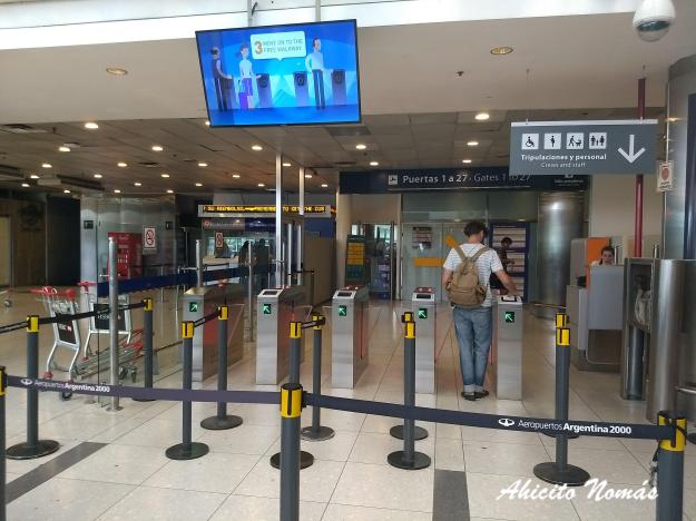 Llevaba conmigo (dentro del equipaje de mano, por supuesto) mi cámara reflex Canon que, con sus correspondientes lentes, yo ya había declarado en el formulario de aduana al que se puede acceder en la web de AFIP. Papel completo y en mano, sólo faltaba validarlo con el guarda de aduana apostado a un lado de los mostradores de check in en la Terminal A.