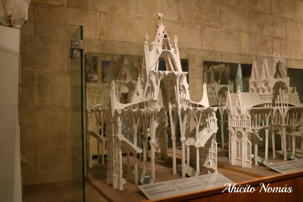 En el museo se pueden apreciar tales obras, e incluso se tiene una idea del avance de la construcción y cómo Gaudí la fue pensando, paso a paso. Así una de las primeras maquetas muestra la estructura principal y cómo su peso es soportado por las columnas, para luego ir agregando elementos a medida que la obra avanzaba.