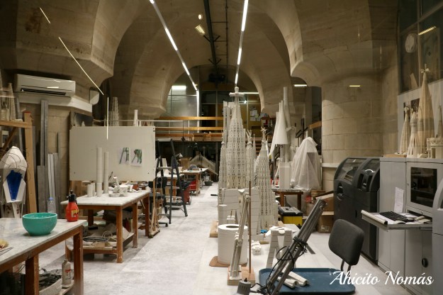 En un momento de la recorrida se tiene una visión privilegiada del taller de yeso donde se crean estos modelos que sirven no sólo para ser expuestos, sino también para guiar la construcción del templo hasta su finalización. Incluso Gaudí en su época trabajaba mucho en un taller similar ubicado muy cerca de donde se encuentra este hoy, donde producía los modelos de yeso a escala, los cuales prefería antes que los dibujos ya que le permitían evaluar mejor los resultados de la arquitectura tan particular que él proyectaba.