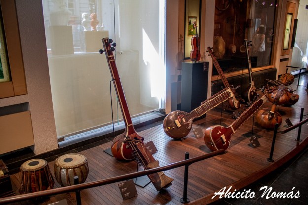 El MIM de Bruselas cuenta con 4 pisos en los que se distribuye la exposición que incluye 1121 instrumentos musicales, aunque esto es una solo una pequeña parte de la colección, de la cual forman parte unas 9000 piezas. Para recorrerlo uno podrá tomar el antiguo y pequeño ascensor (si tiene paciencia y tiempo para esperar en una larga cola para subirse a él), o bien como hicimos nosotros, subir por las escaleras a su alrededor. Cada piso tiene su temática particular.
