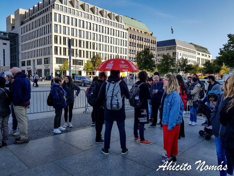 El recorrido comienza paraguas en mano, por supuesto, frente a la Puerta de Brandenburgo.