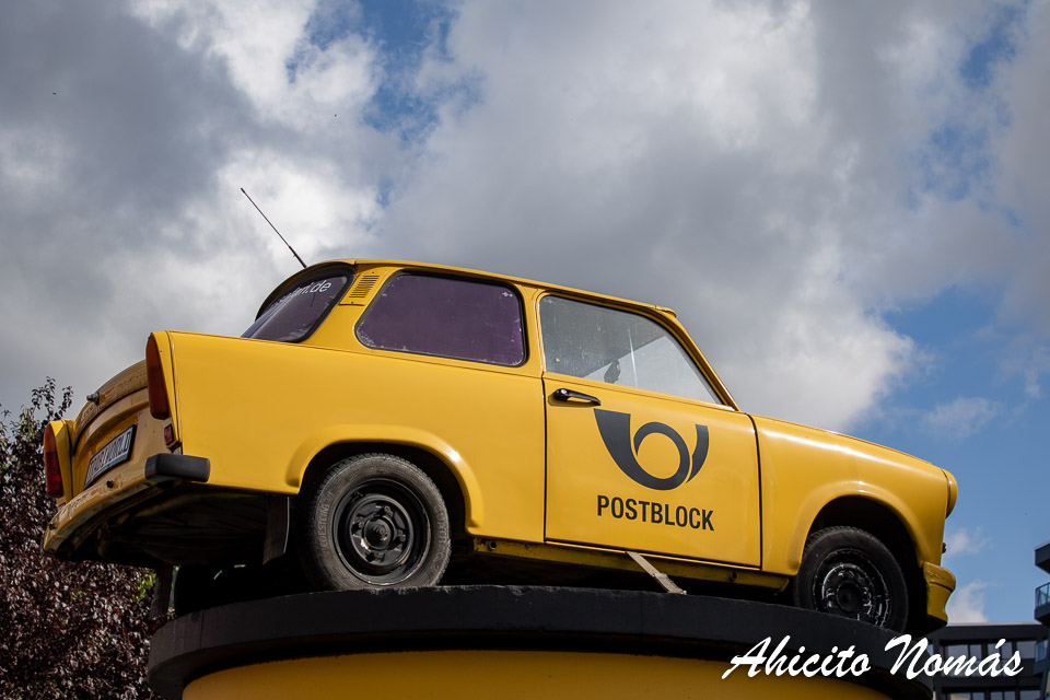 A media cuadra del Checkpoint Charlie un auto en lo alto llama la atención. Es el Trabi World, donde se puede conocer más sobre el mítico auto de la Alemania comunista.