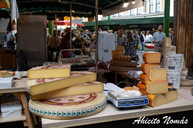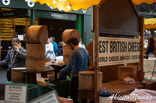 Tan solo pasar por los puestos de queso y sentir el delicioso aroma es toda una experiencia. En la mayoría de ellos hay una o dos tablitas con trocitos para degustar; algo tan irresistible como peligroso, porque los sabores en aquél lugar son exquisitos y los precios están definidos en libras esterlinas…