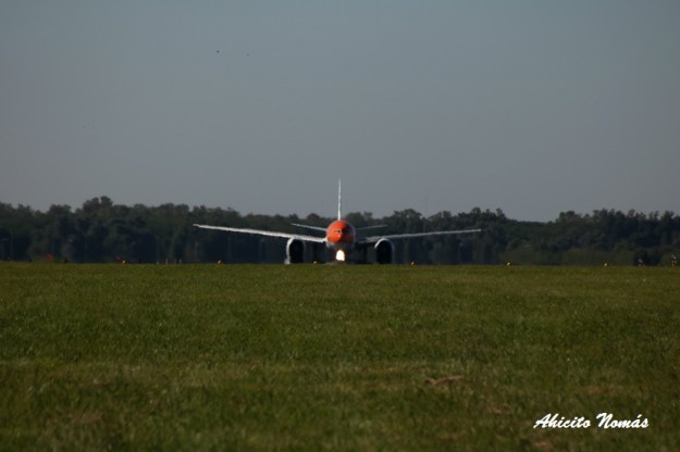 El abordaje fue por el gate «antispotter» 18, donde el avión queda estacionado detrás del free shop por lo que conseguir una foto potable de su fuselaje completo resulta prácticamente imposible. Igualmente no tuve mucho tiempo para quejarme porque siendo que volaba en uno de los últimos asientos del avión, fui uno de los primeros en subir.
