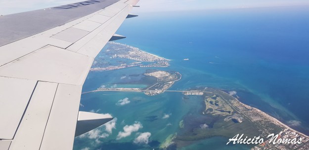 Y otro detalle del vuelo diurno: a destino se llega también de día, a las 17:10 según el horario del schedule. Y eso hace que se puedan tomar buenas fotos de Miami desde el aire, cosa que arribando antes de las 5 am es bastante difícil.