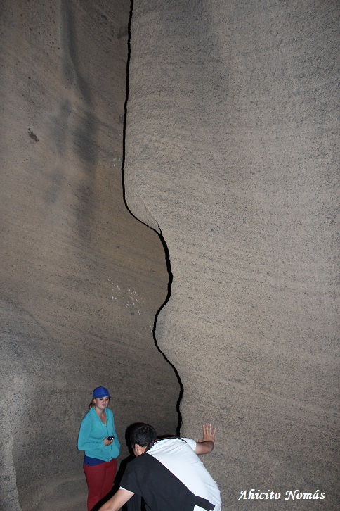 El ascenso termina finalmente cuando se llega al «Centinela»: una enorme roca en forma de montaña que en parte tapa la vista del valle que uno tiene delante, y en particular de la laguna. Ese lugar es una especie de mirador natural que obliga a frenar y bajarse del auto para sacar una foto. Ese es también el lugar en el cual varios autos pegan media vuelta, asustados por lo complicado del camino, y por lo que se ve que falta. Los valientes seguimos adelante y descubrimos que en bajada, lo que resta no es tan pedregoso. Eso sí: mejor que tengas los frenos en condiciones y buena mano para frenar con el embrague…