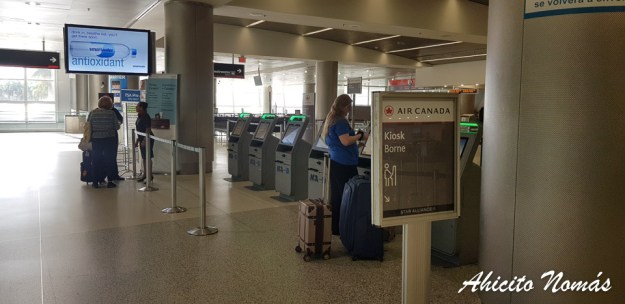 Una vez que adherí los stickers a mi equipaje (tarea con la que recibí la amable ayuda del staff de tierra de Air Canada Rouge) llegó el momento de despachar la valija… con el sistema automático! En ese momento no tenía idea, pero algo similar se estará implementando próximamente en Ezeiza, así que me vino bien para comentarlo en este post, y para irme entrenando.