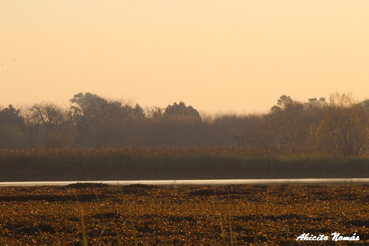 Así, la «superficie verde» de la laguna podría fácilmente confundirse con campos de tierra firme, pero la realidad es que si uno intentara caminar por ahí se le va a complicar bastante. Por si la imagen del satélite no es lo suficientemente clara, en esta foto se ve bien lo que trato de decir. Aunque se ve vegetación a través de una gran extensión, allí abajo hay agua.